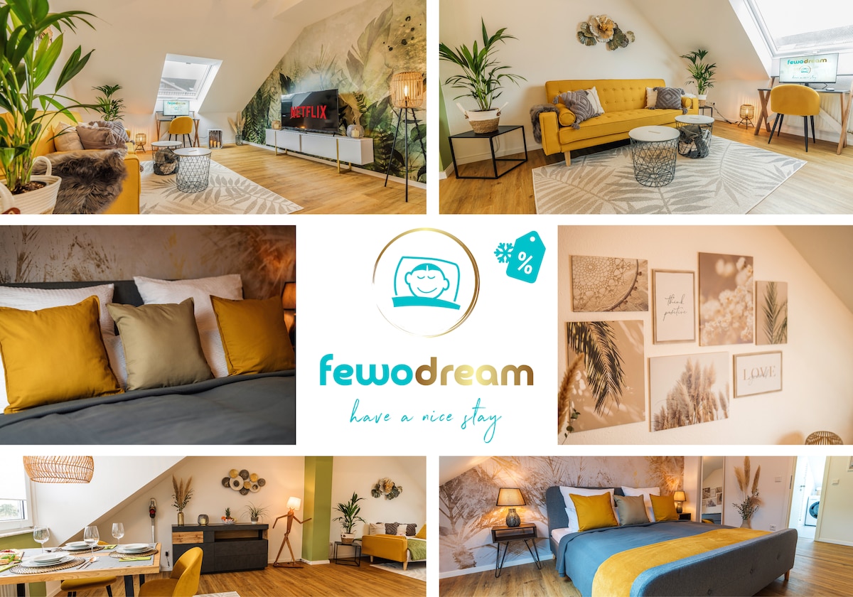 The accommodation for up to 2 guests on the top floor is located in a residential area with inner city periphery adjacent to a park near the YAYLA Arena in Krefeld. The location of the accommodation is central and quiet, in the neighborhood there are small and local supply stores (baker, butcher, pharmacy, supermarket). The accommodation is a good starting point to discover the region of the Lower Rhine with its sights.