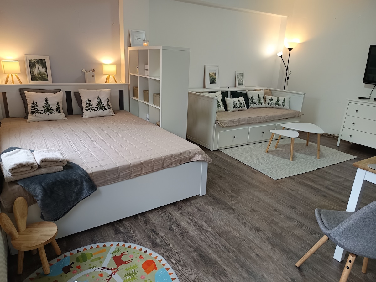 宽敞的健康公寓,带桑拿、花园、烧烤架