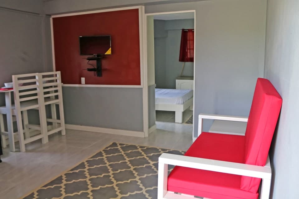 Enjoy Kaibus Place- a quaint home away from home. Kaibus is just steps away from two separate access to two independent beaches. Situated a mere 4 minutes away from the Airport. Kaibus is a well appointed space and includes high-speed WiFi, Smart HD Tv (fire-stick), fully equipped kitchen with cozy bedroom that opens directly onto the balcony/patio. Eating area is also on the balcony/patio. Stackable Washer-Dryer is located in the bathroom. Hotel restaurant is within easy walking distance.