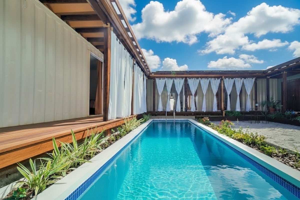 Stay in a striking villa with your own private saltwater pool and sun-drenched courtyard garden. Four bedrooms—each with AC and a private ensuite—perfect for families, friends, or groups. Retro diner dining, a cozy cinema corner, and a workspace round it out. Just 15 min from the airport with backup power, fast WiFi, and parking for 7. Comfort, privacy, and a stay you’ll actually remember.