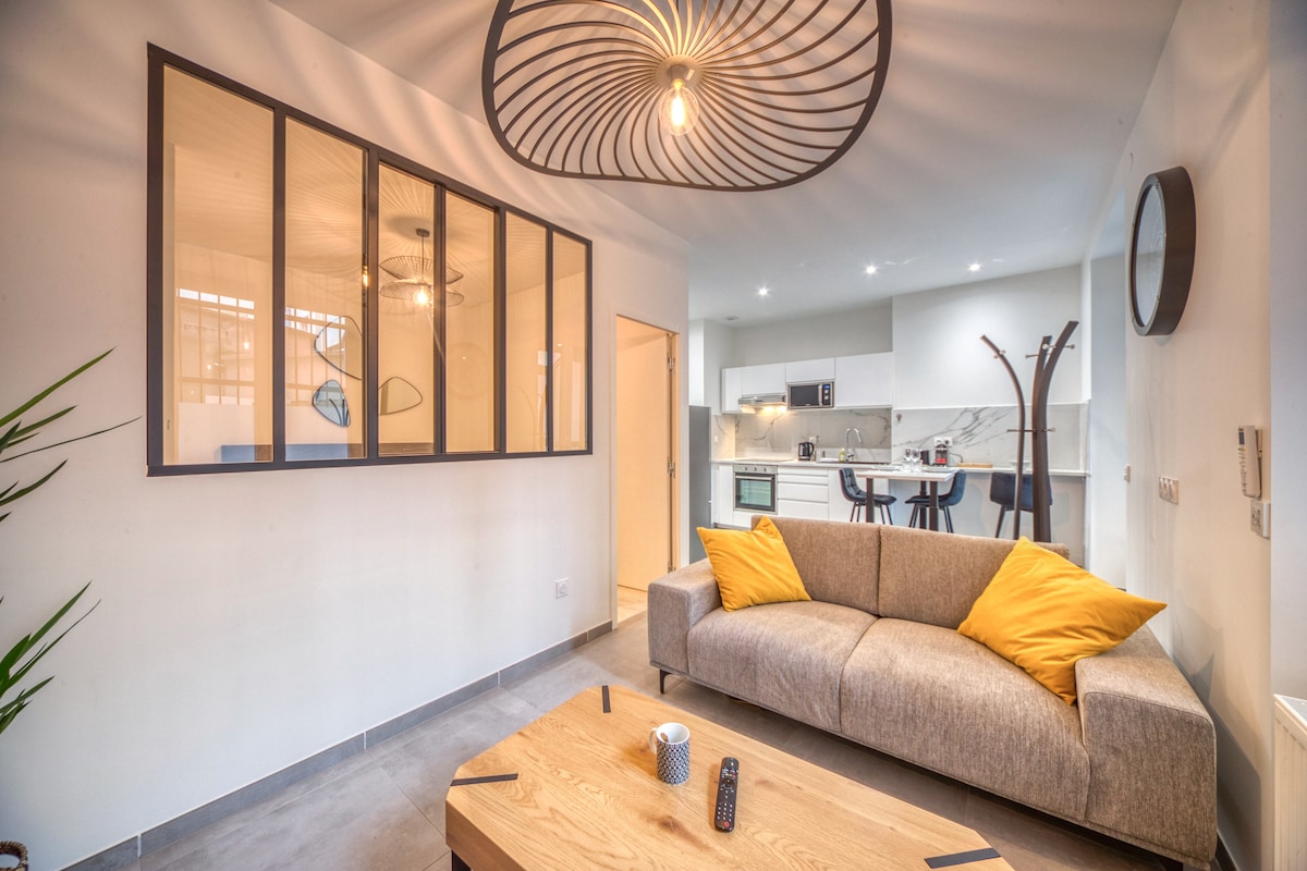 Studio lumineux entièrement refait à neuf ! ☀️ Logement à deux pas de la gare, proche de l'hyper-centre et de toutes les commodités. Immeuble avec ascenseur, calme, récemment rénové et totalement sécurisé. Entièrement équipé : lit queen size, machine à laver, lave vaisselle, machine à café, four, bouilloire, grille pain, sèche cheveux, fer à repasser, ...