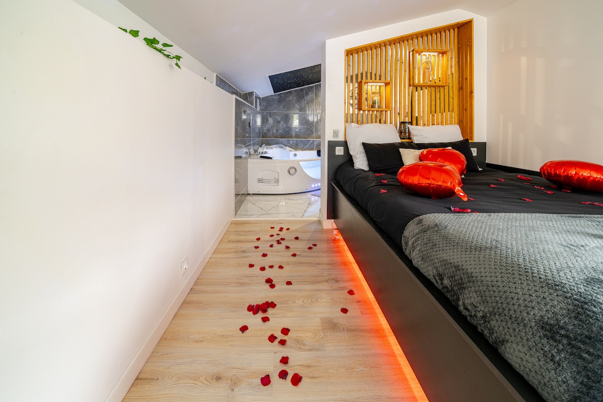 Véritable Loft, composé de ses différents univers. Vous trouverez l'atmosphère romantique au coin du feu, l'ambiance reposante et étoilée de son SPA haut de gamme, la relaxation de ses méridiennes, la volupté de son salon tantrique et de la balançoire, et sa chambre, où la fenêtre boréale vous bercera. Une cuisine idéalement conçue, permettra aux chefs de traduire leurs inspirations culinaires, pour ravir leurs bien aimé(e)s