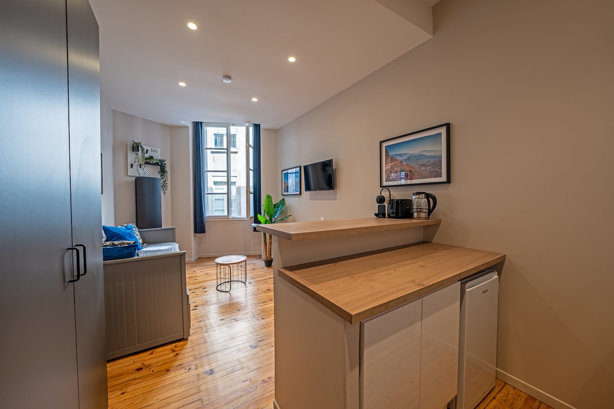 家具齐全的出租房源,配有厨房和其他便利设施,让您在一个月或更长时间的住宿中享受舒适生活。一个代替转租房的完美方案。