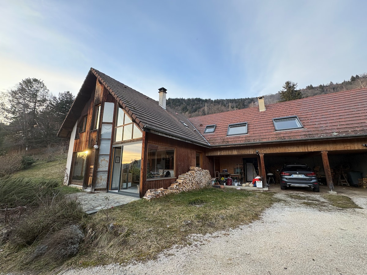 Aménagé dans une ancienne ferme du 19° entièrement restaurée face à une vue exceptionnelle. Au cœur du Parc Naturel de Chartreuse, dans une ambiance chaleureuse, vous trouverez un gite soigneusement décoré pour 6-7pers, 3 ch, 2 SDD, SAUNA; jardin clos arboré, terrasse abritée+barbecue; PISCINE hors sol+terrasse bois et tonnelle. Balançoire, trampoline. Ts équipts pour votre confort (accueil des BB, wifi gratuit,LL, LV, four, Tassimo, micro-ondes), lits faits, ménage, serviettes compris. 4 EPIS