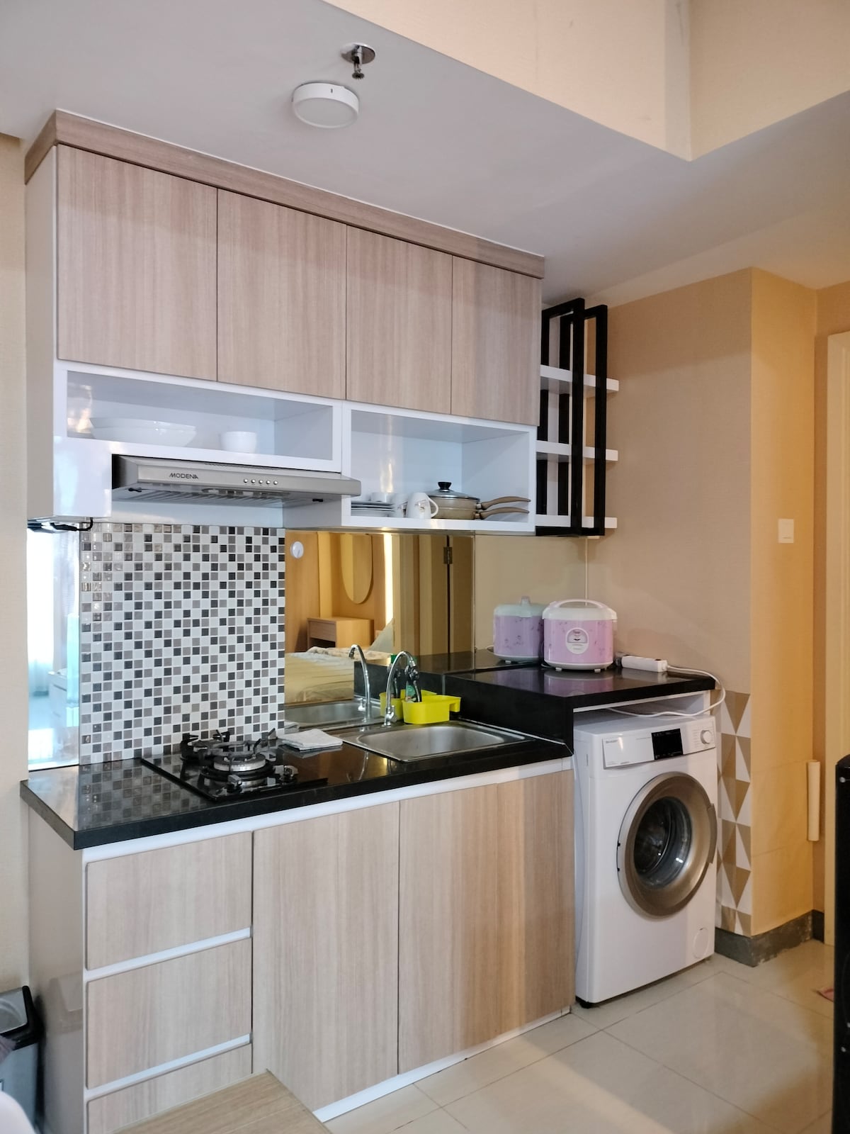 It's a nice little room tucked away in comfortable neighborhood and quiet street! Suitable for people who like to keep fresh in mind. Addition to this is a coffee shop with lush greenery.