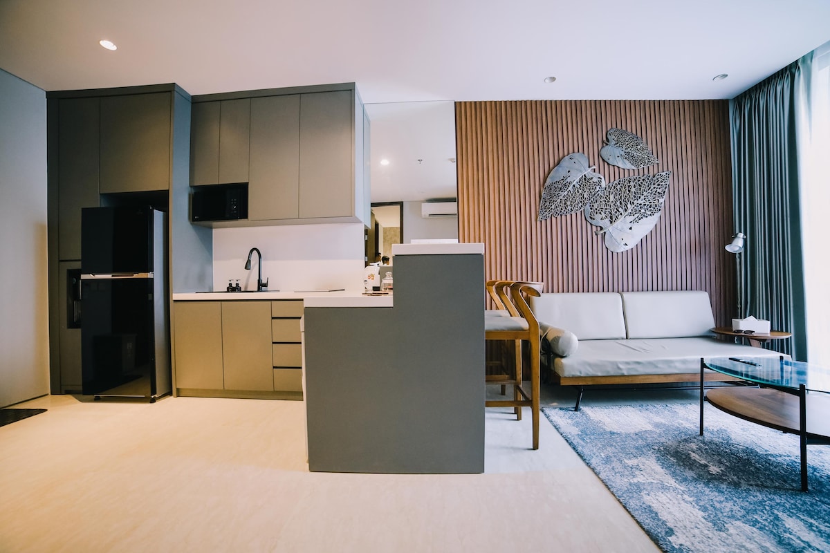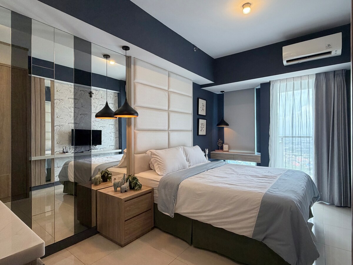 Enjoy a stylish lifestyle in this brand new 2023 apartment, with direct access to the biggest mall in Indonesia, Pakuwon Mall. This luxury apartment is located in the LaViz building and has complete amenities such as gym, swimming pools, hot jacuzzi, rooftop garden, and a 24h concierge in the lobby. *Free parking is only available upon request for weekly/monthly stays. To request, please notify & message me at least 5 days in advance. I will need a photo of your STNK. Paid parking is available.