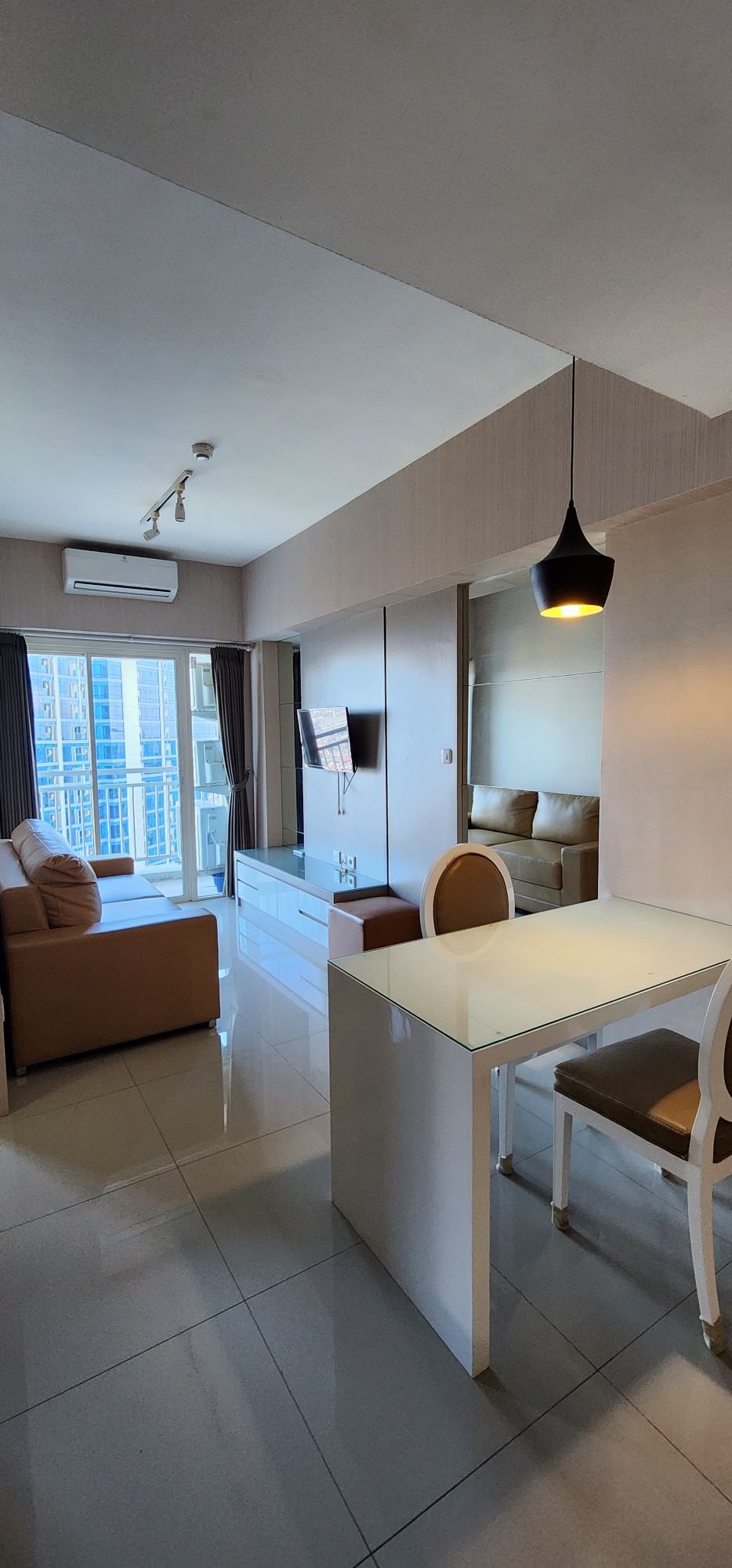 Located above Ciputra World Mall in West Surabaya, this luxurious, private, and newly built apartment offers spacious interiors. The private patio boasts stunning city and pool views. Exclusive amenities include a pool, sauna, gym, and jacuzzi. The rook itself have a private kitchenette, balcony, work table, and a smart tv with netflix and youtube. Surrounded by chic cafes and luxury hotels, with direct mall access, it blends elegance, convenience, and vibrant urban living.