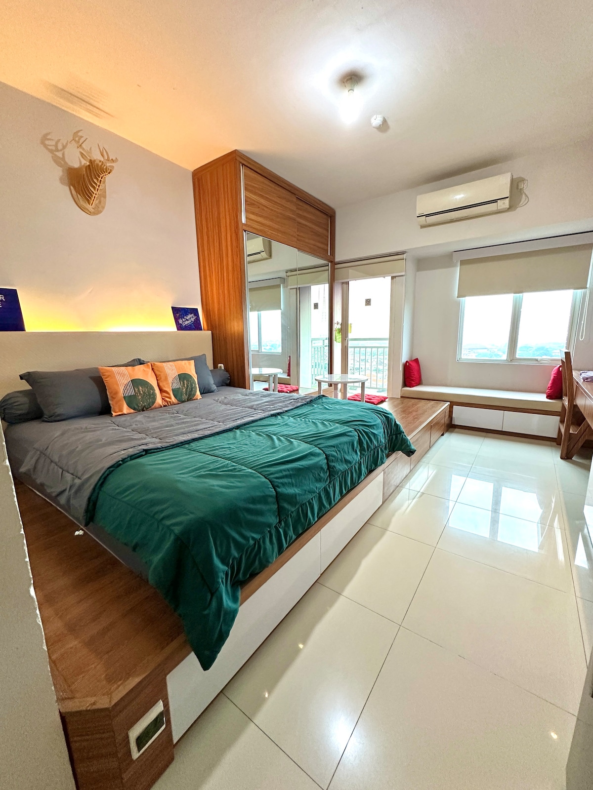 Our room is in Tanglin Apartment with direct access to Pakuwon Mall, the biggest shopping mall in Surabaya. Our room initially designed for private use, so it’s very homey and stylish. Located in podium floor so the space is bigger than most of other studio room [ 29m²]. Gym, pool, and free parking access is available for all guest. Check in and check out time can be flexible as long as there is no other guest coming or staying before. Enjoy your stay!