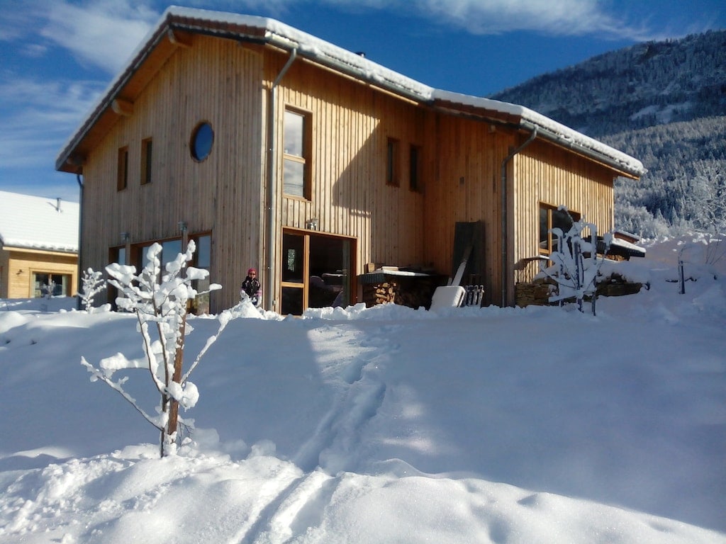 Dans une déco cosy chalet classé 3 étoiles tout confort, totalement équipé : lave vaisselle, lave linge, four, téléviseur. 2 chambres et 1 lit sur mezzanine. idéal 4 personnes maxi 5. Salle de bain. Lit / chaise /baignoire bébé. Salon avec baie vitrée, poêle à bois et/ou radiateurs. Terrasse vue dégagée salon de jardin, barbecue. Abri de jardin fermé pour skis, vélo, poussette . Parking privé. Proche pistes et commodités : épicerie, cinéma, piscine municipale. Navette gratuite pour les pistes