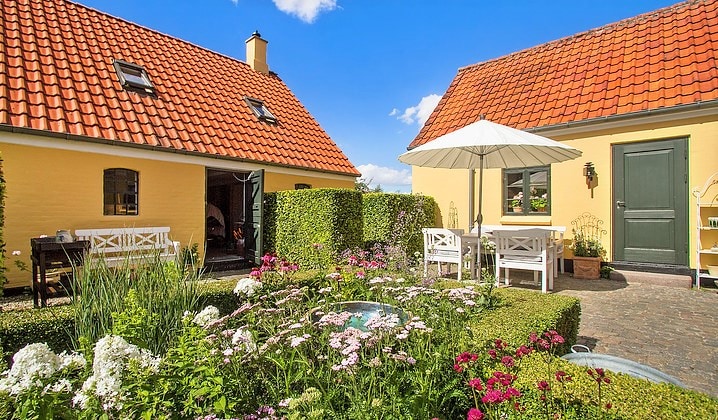 This unique property is among the first houses at the coast. It had a direct view of the sea and has been named "Havblik" (Sea view) since 1875. Today, the old house has been restored with a modern aesthetic. It's large and spacious, and you will immediately notice the ceiling with visible wooden beams and the calm cozy atmosphere. Open the large double doors and connect the cozy garden with the living room and kitchen. From the house, you can walk 200 meter to a wide bathing beach.