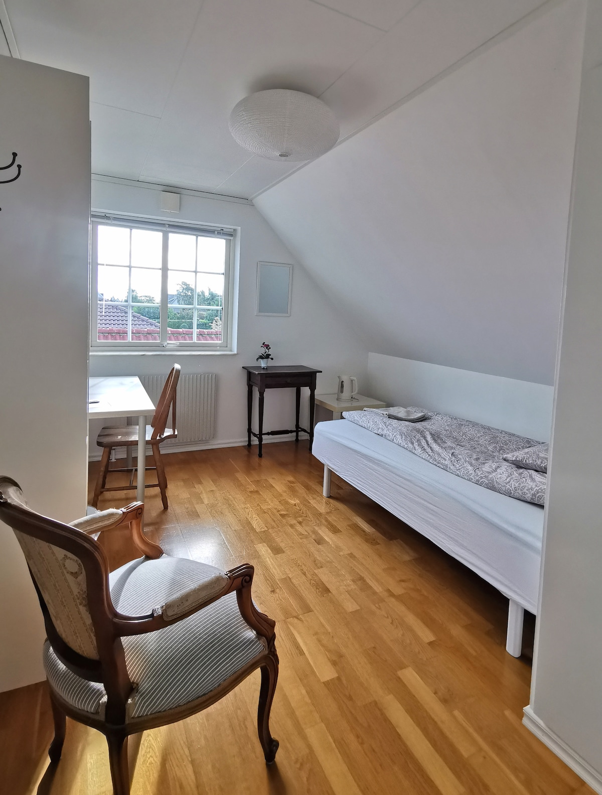 The private room is located on the 1st floor in an idyllic wooden house. You will have access to the cozy living room and the balcony from which you can see the beautiful garden with flowers and fruit trees that surround the house. The house is extremely bright and well maintained and decorated with light furniture. In addition, I take great pride in the fact that the house is always clean and neat. You will have your own entrance to the home.