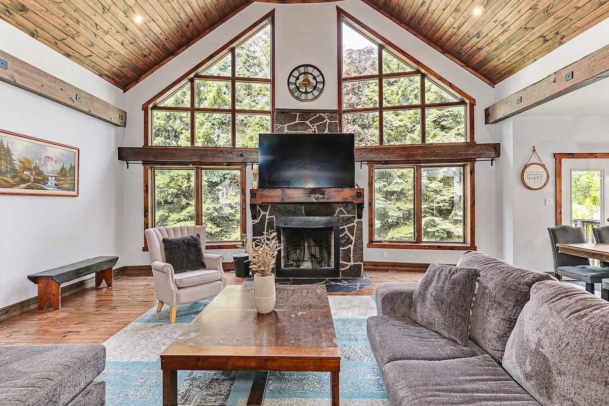 PROMOTION: book 2 nights get 1 free!* Follow us @cottagesatblue to qualify This large 2,400 sq ft 3 level, 6 bedroom, 2 bathroom Swiss-style chalet boasts wonderful views of Blue Mountain. Enjoy the view of Blue Mountain from the wrap-around deck or from behind the wall-to-wall windows, in the comfort of the living room with a real wood-burning fireplace. Enjoy all the conveniences of home! *Promo does not apply to holidays or long-weekends - please contact the hosts for further information