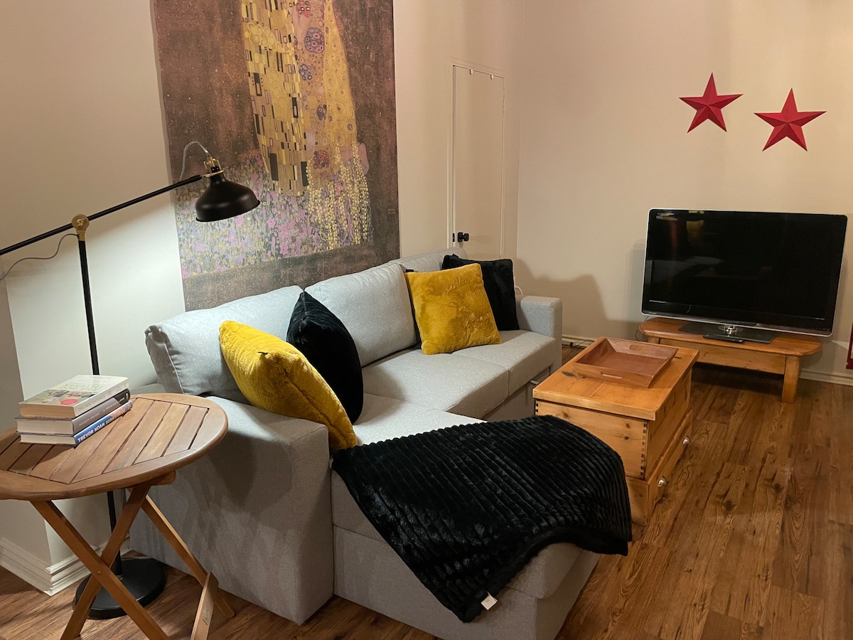 Relax and unwind at this private getaway surrounded by peaceful woodland. California King bed and blackout curtains so you can ease into your morning with birdsong and the scent of fresh forest air. Refresh with a hot shower or relax in a clawfoot tub in your own spacious private bathroom. 3 acres of private woodland is yours to enjoy with easy access to the scenic Bruce Trail. Free parking, fast Starlink Wi-Fi, and a 50" Smart TV for cozy movie nights in.