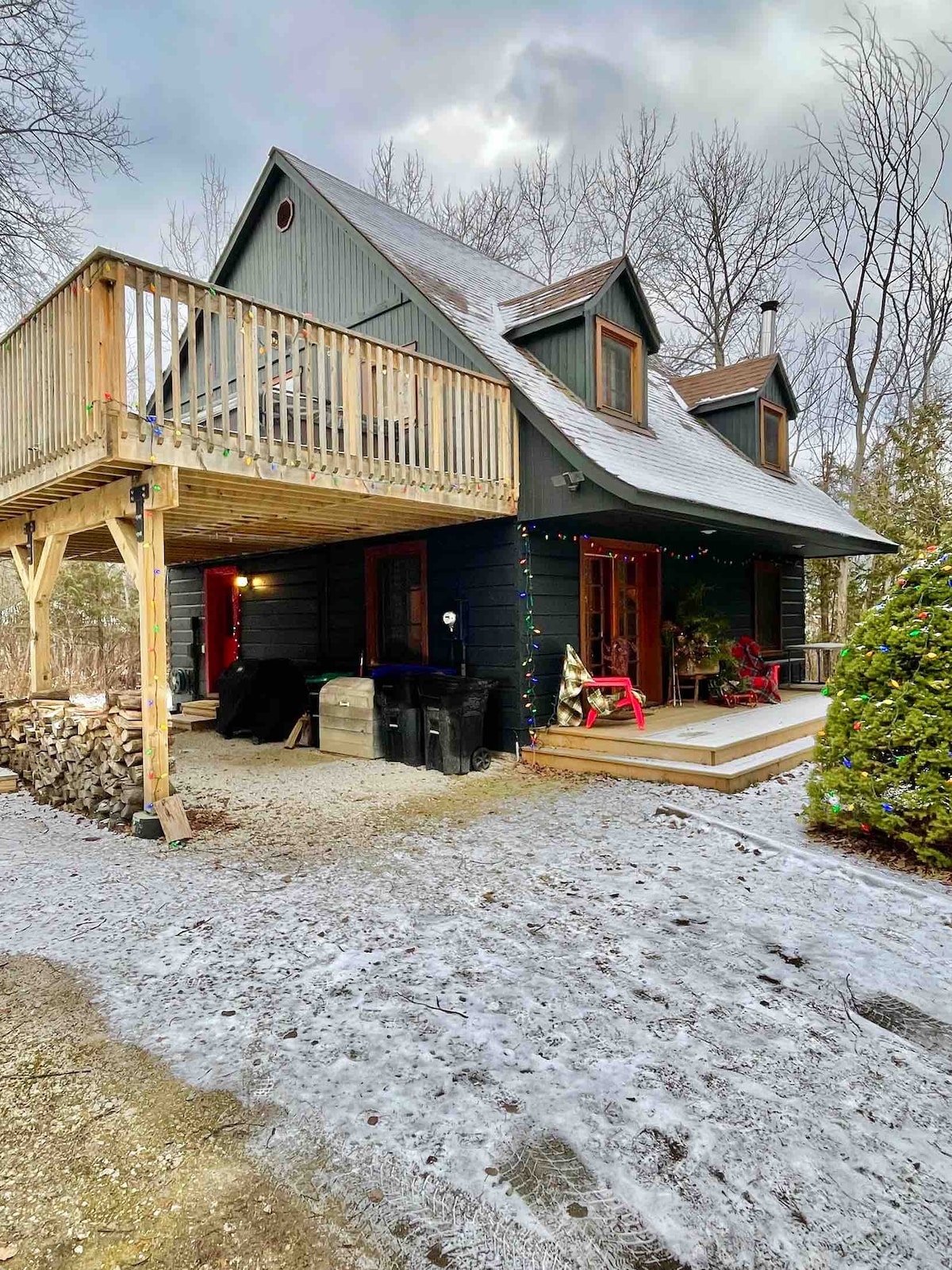 Kimberley Creek Cabin is located in Kimberley, Ontario on a 2 1/2 acre lot surrounded by an old growth forest with a stream running through the property. If you are looking to connect with nature and you enjoy upscale facilities, then this special vacation spot gives you the best of both worlds. Nightly rate includes HST. We are close to hiking, cycling, canoeing, golfing, winter sports, spas, art studios, and fine dining, or simply relax by the firepit or on one of two private decks.