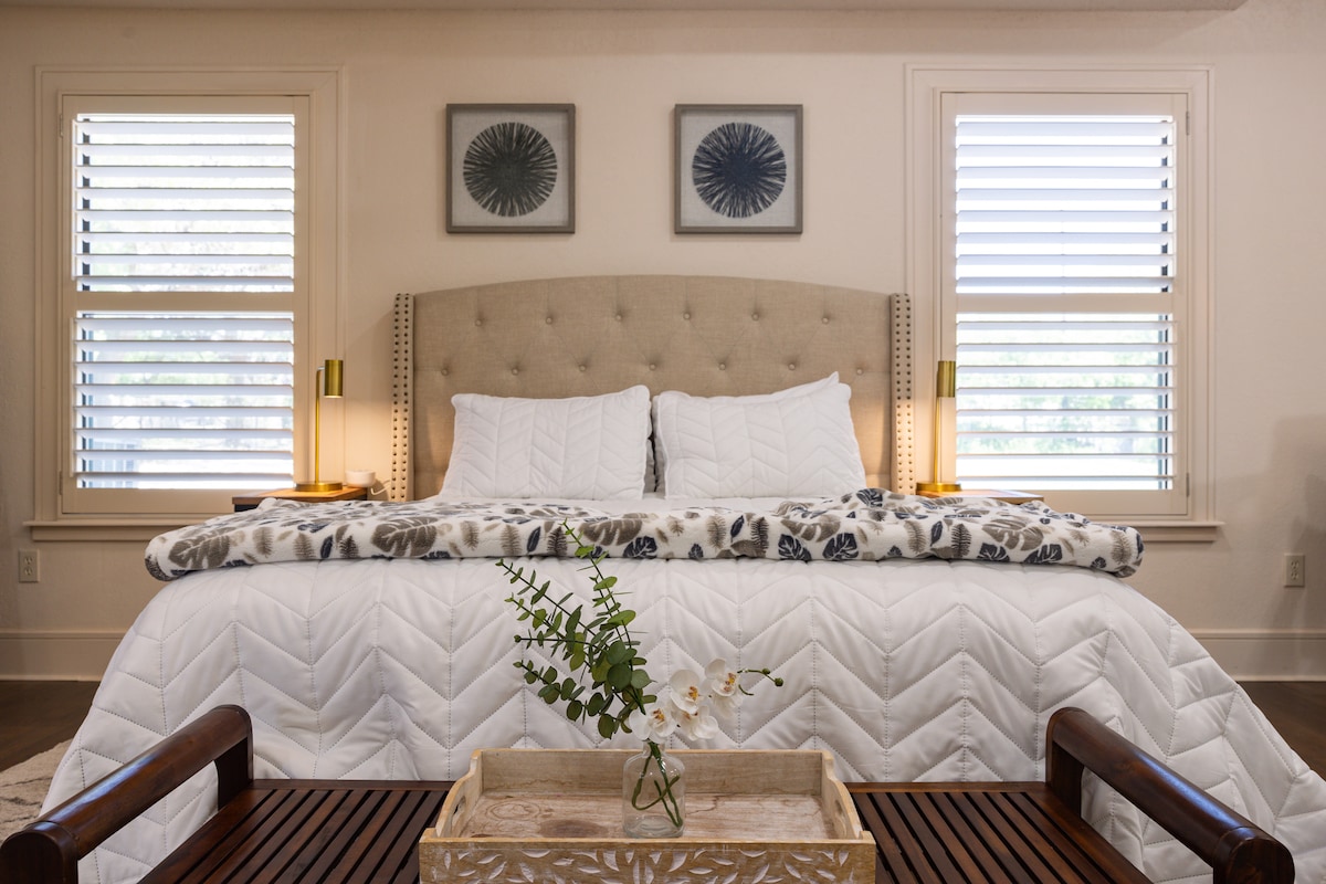 Nestled in the heart of Old Town Helotes, our 107-year old house is home to our beautiful bed and breakfast upstairs and our incredible coffee shop downstairs! The space is the entire second floor! With tons of natural light, feel free to people watch from the sunroom, or snuggle in the cozy living room! Enjoy the double-headed shower! Delicious smells of pastries and coffee roasting on site tempt you into the shop early! Check out the surrounding antique shops, clothing boutiques and more!