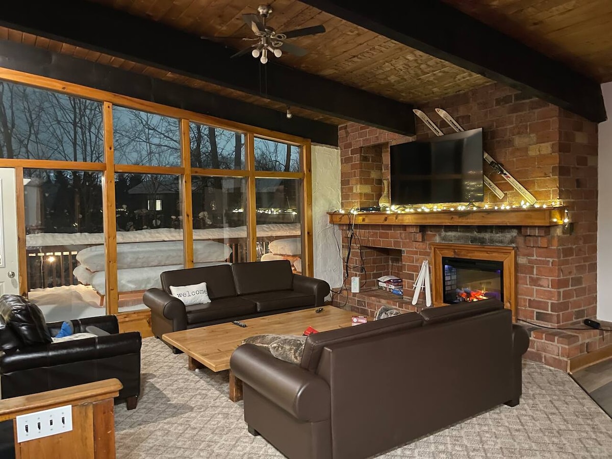 We would love to share our vacation chalet with you. This ski chalet has everything and more! We have an outdoor Hot Tubs, an indoor Sauna, and Entertainment such as a Pool Table, video games and a large 75 inch HD TV for your movie nights. Surround your friends/families around our renovated Kitchen, large Centre Island and large Dining Room Table. Seat in our covered Sunroom to have a morning coffee or enjoy your BBQ food all year round. Only 7 min walk to the Village