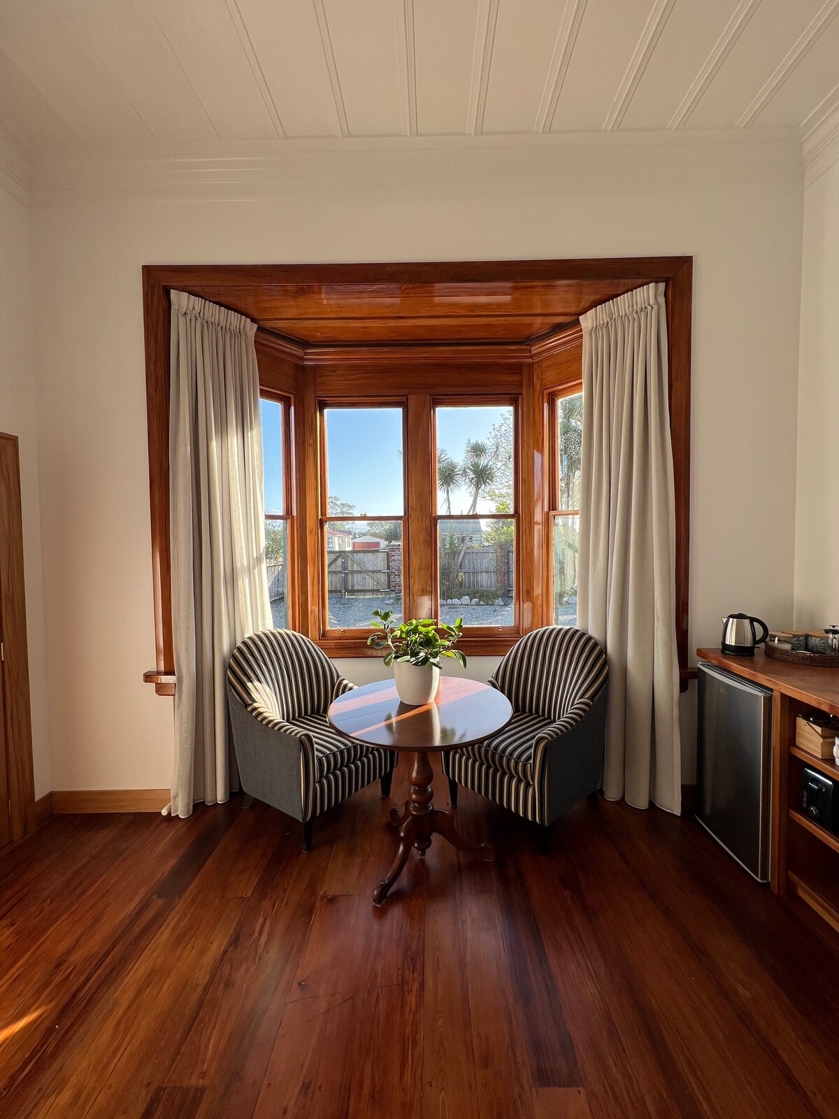 We offer a place like no other. The Mamaku Roost is a large, unique, private & peaceful oasis with easy access/parking in a semi rural setting (but super handy location) 5 minute drive to town, train & beach. Art, antiques, original wooden floors, log burner, double glazing/curtains, modern hot shower, heated blankets, kitchenette, fast wifi, black out curtains. Outside has a covered patio, outdoor fire/furniture, fountain, native bush, farm, garden, beehives, friendly animals. Guests say WOW.