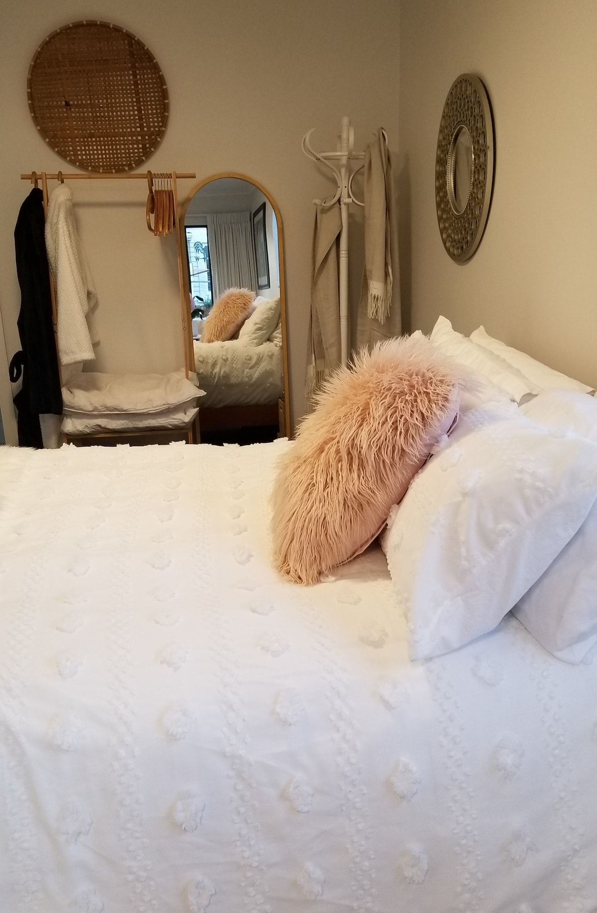 We offer a place like no other. The Mamaku Roost is a large, unique, private & peaceful oasis with easy access/parking in a semi rural setting (but super handy location) 5 minute drive to town, train & beach. Art, antiques, original wooden floors, log burner, double glazing/curtains, modern hot shower, heated blankets, kitchenette, fast wifi, black out curtains. Outside has a covered patio, outdoor fire/furniture, fountain, native bush, farm, garden, beehives, friendly animals. Guests say WOW.