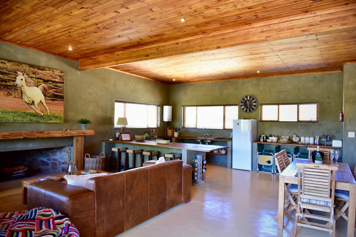 SKYROO’S self catering cottages are the perfect getaway and welcomes you to enjoy nature in the Small Karoo at its very best! Tastefully furnished & equipped with fine quality bedding and towels. Each cottage sleeps four. Both bedrooms are en-suite with full bathroom. In the open-plan living & dining area, an indoor fireplace, already stacked will warm you on a chilly night. For those balmy evenings spent under the stunning Karoo sky, a braai area & 'conversation pit' awaits.