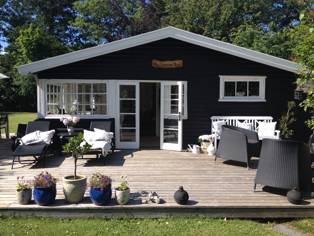 Take it easy at this unique and tranquil getaway. A cosy guest cabin for one or two people at the back of my garden. It is 13 square meters large. 1 km from the beach. 1 km from grocery stores. 400 m from the bus stop. 10 km from Gilleleje and Tisvildeleje which are the two main tourist towns on the north coast. The kitchen and bathroom can be used in the main house. A small fridge is included in the cabin. Two bikes are available.
