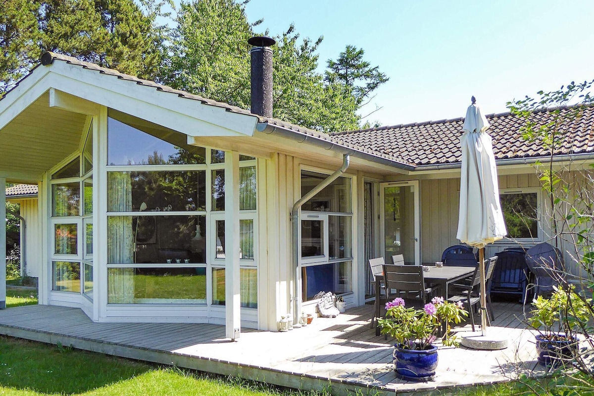82 m2 sommerstemning med kun få min. gang til børnevenlig strand og 4 km. til Tisvilde. Huset har en stor lys stue/køkken alrum med direkte udgang til 100 m2 træterasse, hvor der er sol fra morgen til aften. Inde og uderum smelter fint sammen og giver masser af plads til hygge og leg. Stuens store vinduer gør, at hvis man sidder inde, kan man stadig nyde solens varme stråler. Skøn udsigt fra stuen til haven. Der er flot nyt badeværelse og 3 værelser med plads til i alt 6 personer.