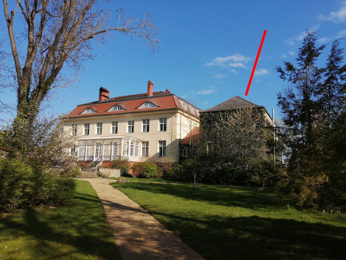 Freuen Sie sich auf eine besondere Überraschung: Hier wartet im Dachgeschoss ein wunderbar geräumiger Loft-Raum! Ein Raum mit viel, viel Licht und noch mehr Raumvolumen! Im Zentrum steht das spektakuläre, runde Südfenster, das den Rahmen vorgibt für den Postkarten-Blick auf die Schlosswiese. Nach Westen geht es hinaus zur weiträumigen Terrasse. Das ist das perfekte Frühstückszimmer – und abends der richtige Logenplatz für den Sonnenuntergang.