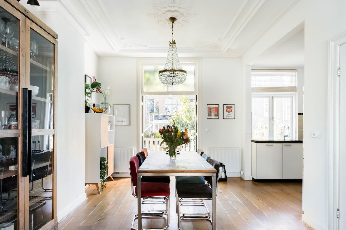 This is ‘Het Witte Heertje’, our traditional townhouse in the centre of Utrecht. The house was originally built around 1880. We offer you a fully renovated 40m2 apartment optimally suited for two persons, situated in a friendly, relaxed neighbourhood. Various shops, restaurants, (coffee) bars, the canals and other sights are within a stone’s throw of the house. The park immediately behind the house is a lovely place to spend some time on sunny days. And for laid back evenings we provide Netflix.