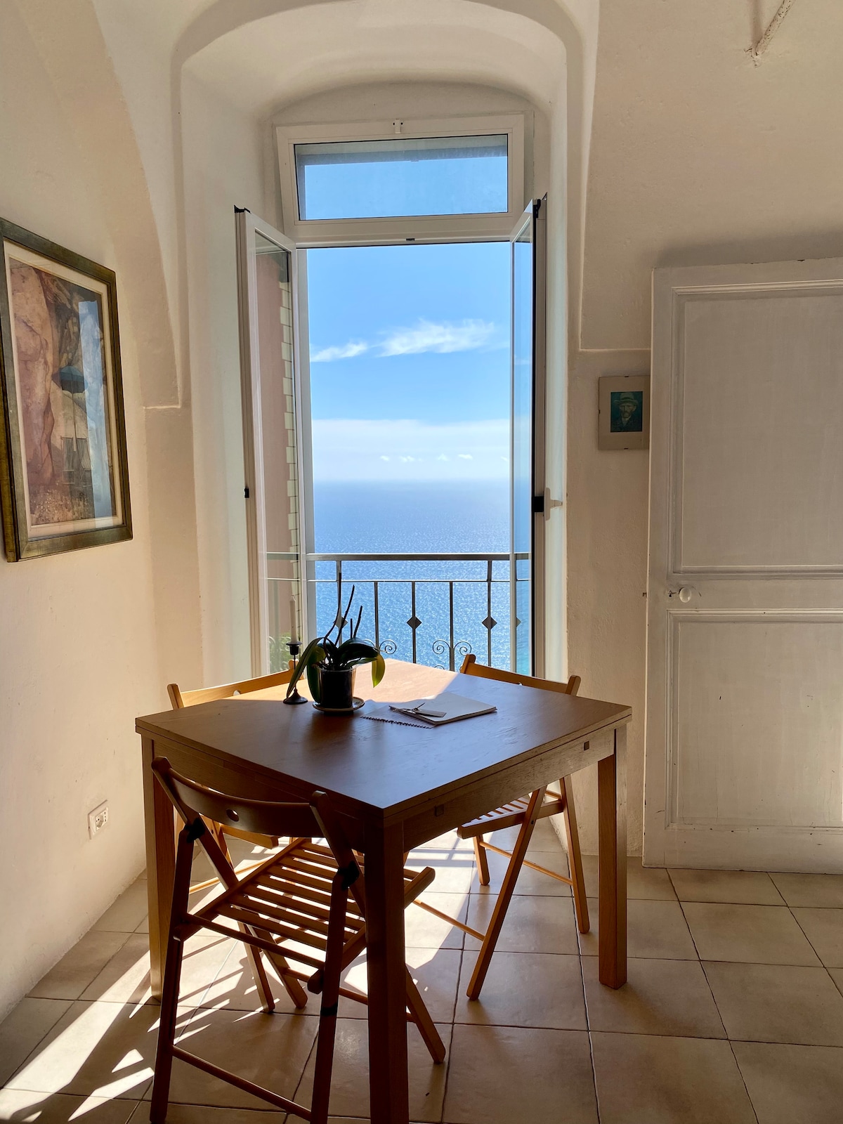 L’appartamento con accesso indipendente è situato a picco sul mare ed ha una vista mozzafiato sulla Costa Azzurra. L’appartamento è composto da un'entrata, soggiorno con terrazzo, cucina attrezzata, camera con letto matrimoniale alla francese (140*200)e bagno; e da un soppalco con un altro letto matrimoniale(160*200) ed una spaziosa cabina armadio. Aria condizionata,WiFi, incustodito,lavastoviglie,lavatrice,microonde,bollitore,ferro/asse da stiro,Phon,macchina del caffè,TV. Posto auto Privato