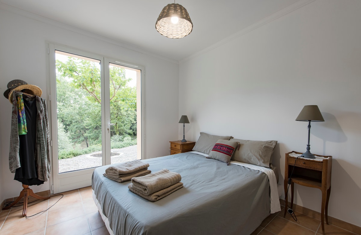Beau studio meublé 21m² avec salle d'eau-WC, en rez de jardin d'une villa, avec terrasse privée 16m², dans village pittoresque du centre Var, à 30 km du bord de mer et des Gorges du Verdon. Cuisine intégrée et très bien équipée, lit 2 personnes 140x190, canapé 2 places convertible en méridienne ou en lit 1 place pour enfant. TV TNT SAT. Climatisation. Lave-linge et Lave-vaisselle, multiples équipements et produits fournis. Non fumeur / Pas d'animaux. Classement 2 étoiles aux Gîtes de France.