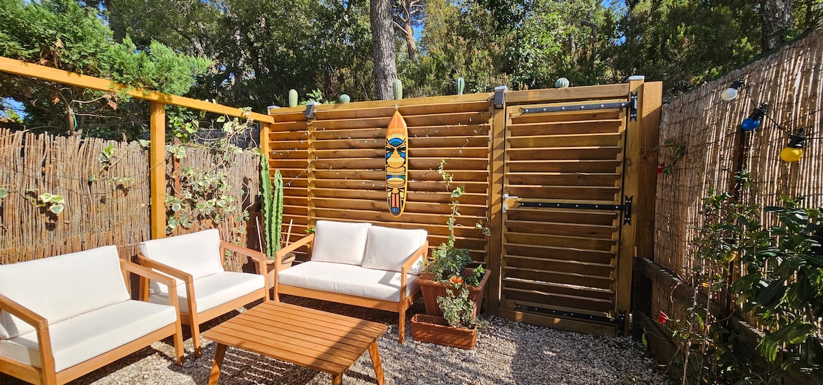 Relax at Casa Oliva – Maisons Mimosa, a charming two-level village house located in a peaceful hamlet in the Gulf of Saint-Tropez. Fully renovated and air-conditioned, it offers a beautiful sea view from the living room, tasteful decor, and a fully equipped kitchen, ideal for family stays. The beach is just a 5-minute walk away. Ideally located, Casa Oliva is 10 minutes from Sainte-Maxime, Grimaud and Port-Grimaud, and 20 minutes from Saint-Tropez and Ramatuelle.