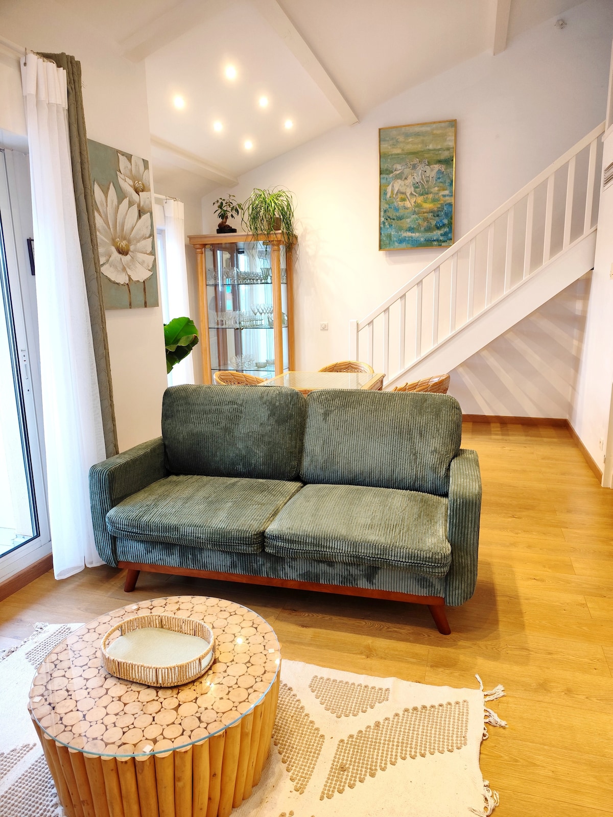 Au calme du tumulte estival et à la fois à proximité immédiate de toutes les commodités, la plage n'est qu'à 5 minutes à pieds. Le logement dispose d'une cuisine équipée, une salle de bain avec WC, une chambre à l'étage avec un lit double en 160, le séjour dispose d'un espace repas, d'un canapé convertible. La terrasse abritée des vents dominants et équipée d'un store est parfaite pour les repas en extérieur. ♻️CLIM🔆 ‼️PARKING GRATUIT TOUT PROCHE DU LOGEMENT‼️ 🛜WIFI