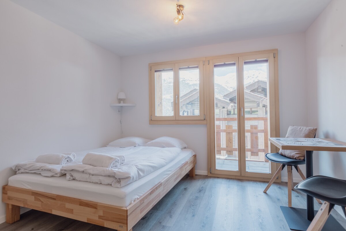Studio In-Alpes is located just outside the center of Haute-Nendaz ski resort in the middle of nature, on the lower level of a chalet build in 1930 that got a full renovation in 2018. The Bed-Up makes this studio unique, with a 48km view into the Rhone valley from the moment you open your eyes. In winter the studio will charm you with the cosy fireplace and underfloor heating, in summer the natural stone terrace will invite you to stay outside and look down into the valley or gaze upon the stars