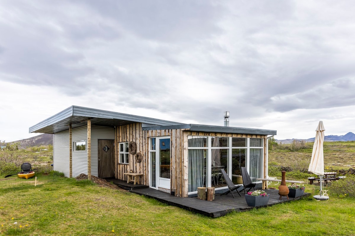 Welcome to our relaxing summerhouse in Thingvellir, Iceland! Nestled in the beautiful surroundings, this cozy and elegant one-bedroom lovers' hut offers a perfect getaway for those seeking tranquility and natural beauty. One of the highlights of this summerhouse is the inviting fireplace, which provides a fantastic experience in the Icelandic cold. Imagine sitting by the crackling fire, sipping a warm drink, and enjoying the peaceful ambiance—it's the epitome of relaxation.