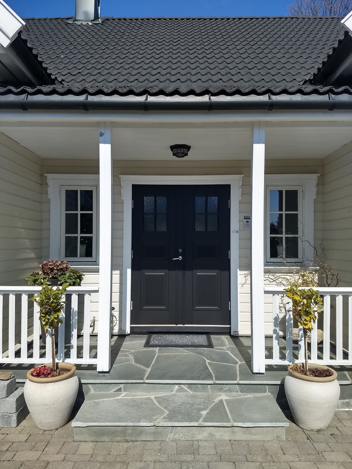 Representativt og stort hus med nærhet til strand, Grimstad sentrum, golfbane og dyreparken. Fra E 18 er det kort vei til eiendommen som har god plass til parkering. Ca. 30 min kjøring til dyreparken ved Kristiansand. Våre gjester kommer til et hjem vi er veldig glade i. Her er det god plass og vi synes hjemmet vårt er preget av lunhet, historie og gode fasiliteter.
