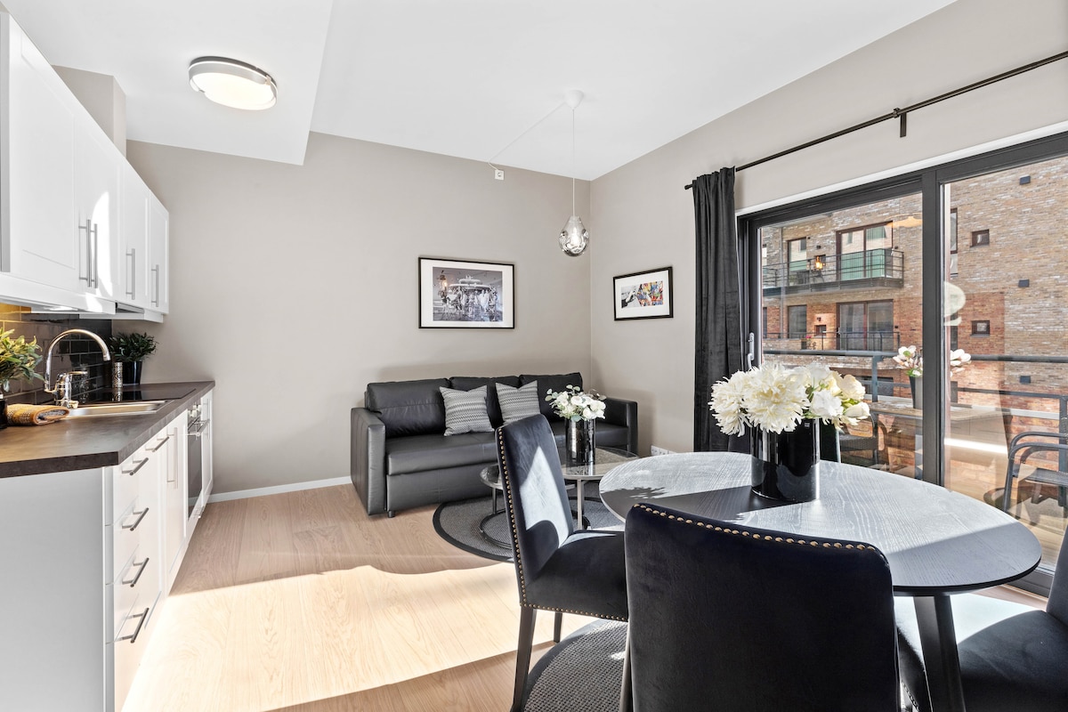 Welcome to a bright and central apartment in the heart of Kristiansand! The apartment has a view of a peaceful courtyard, yet just around the corner from cozy cafés, restaurants, and the lively Markens street. The beach and waterfront promenade are a few minutes away. The perfect location for your stay in Kristiansand! The apartment has a double bed, sofa bed, bathroom, and kitchen. The building also offers a gym, laundry room, and three sunny rooftop terraces – perfect for a relaxing stay!
