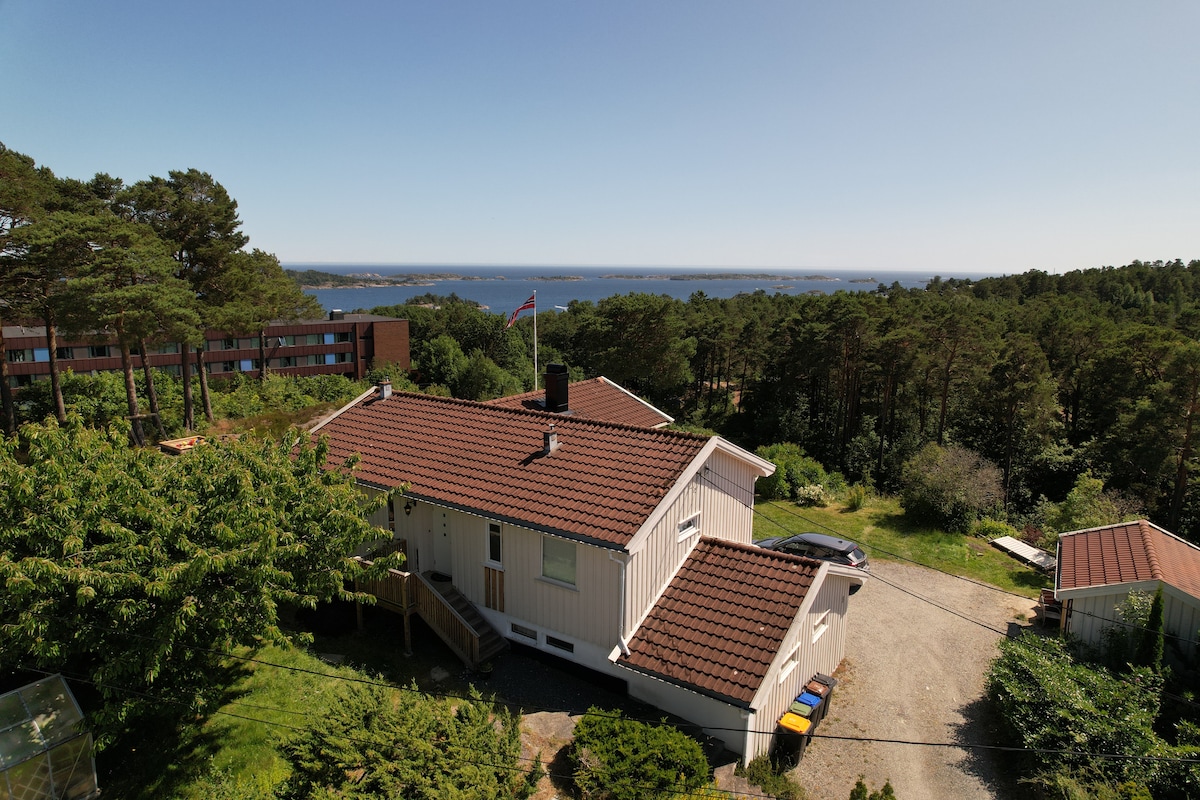 靠近格里姆斯塔德市中心和E18的宽敞独栋住宅