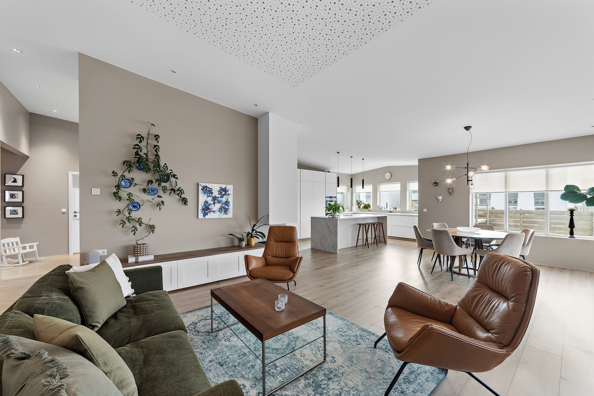 Odpręż się i zrelaksuj w tej spokojnej, stylowej przestrzeni. Mieszkanie prywatne w bardzo bliskiej odległości do lotniska w Keflaviku (10 min) jazdy oraz od największej atrakcji Islandii - Blue Lagoon (20 min). Cicha spokojna okolica z pięknym widokiem na zatokę i ocean. Wyposażone we wszystko co potrzebne zaraz po przyjeździe do Islandii lub zaraz przed wylotem. Możliwy odbiór i odwiezienie na lotnisko lub do Blue Lagoon za dodatkową opłatą. Check in after 9 pm - 20 usd
