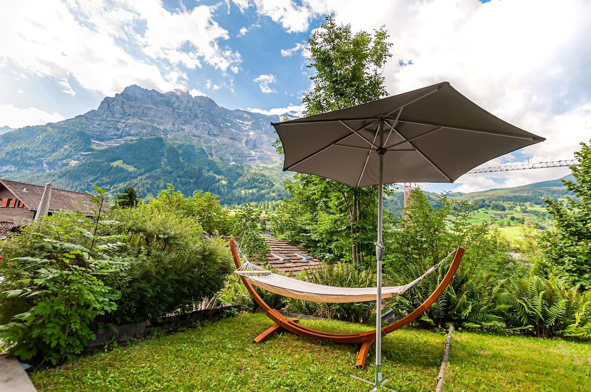 This luxury ground-floor apartment of 85m2 for up to 5 people, located in Grindelwald Grund, is a few steps away from the Jungfrau & Männlichen. It offers breathtaking views of the Eiger and an authentic upscale Swiss experience in a chic alpine style. High-quality materials, design furniture, en-suite master BR, central heating, fully equipped kitchen, garden, fast Wireless, 165cm Smart TV w/100+ channels, Netflix, Bluetooth music box, towels, bed sheets and 1 free car park during your stay.