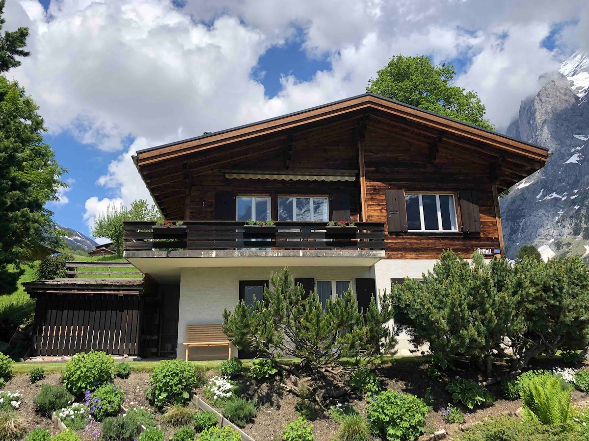 Die Chalet Ferienwohnung liegt im ruhigen Quartiert Spillstatt, nur 6 Minuten vom Bahnhof und ca. 10 Minuten vom Dorfzentrum. Von der Wohnung und dem geräumigen Balkon hat man Blick auf die berühmte Eigernordwand. Neben dem grossen offenen Wohn-, Koch und Essbereich mit Schlafsofa hat es zwei Schlafzimmer und ein Bad mit Whirlpool. Das Chalet verfügt ausserdem über einen Skiraum, Einstellhalle und Waschmaschine mit Trockner.