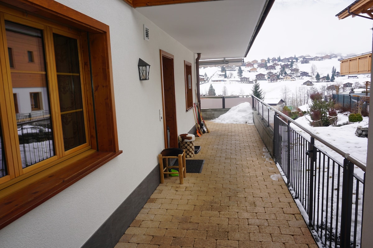 Mit dem öffentlichen und dem motorisierten Verkehr sehr gut zu erreichen. 3-5 Minuten zu Fuss zur Bahnstation Grindelwald Terminal. Das ist auch die Talstation der modernsten Bergbahn von Europa. Sicht auf die Eigernordwand. Ausrichtung der Terrasse gegen Westen mit Abendsonne. Grosse Terrasse mit 40 m2. Zwei Busstationen vor dem Haus. 2-Zimmer Wohnung mit Wohnküche, 42 m2. Geeignet für Paare zu zweit und für Familien mit zwei Kindern im Vorschul- oder im Schulalter.