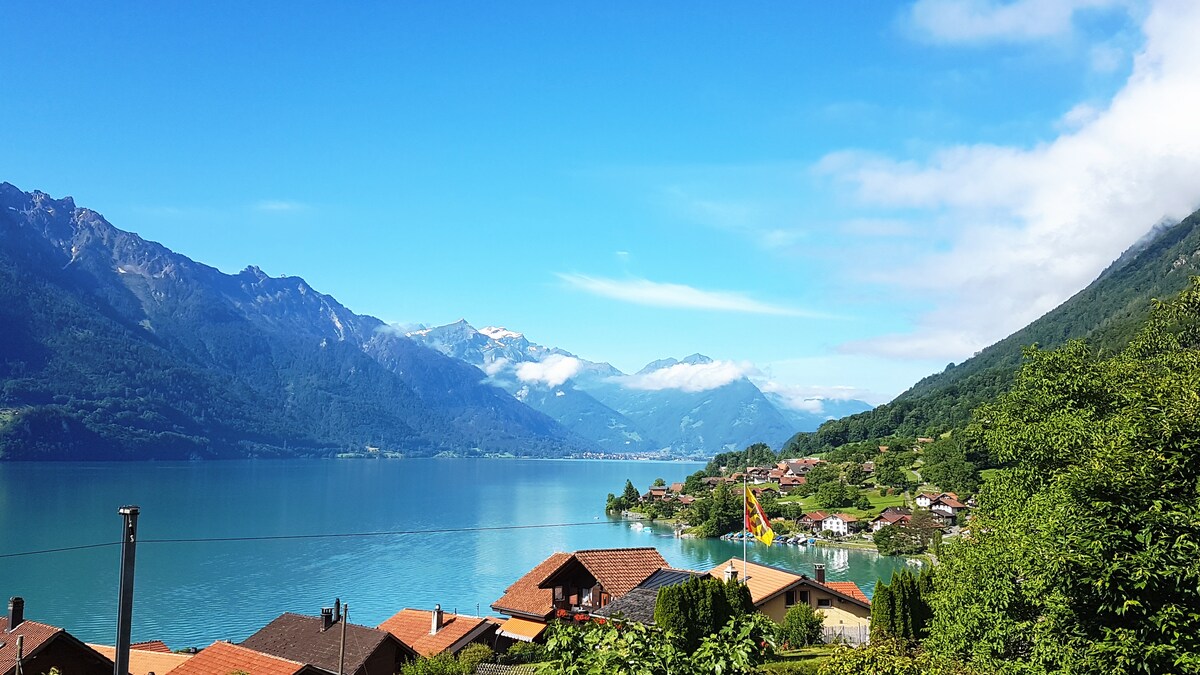 A chic boutique apartment with a breathtaking view of Lake Thun and the surrounding mountains of Bernese Oberland. Our newly renovated 3-room apartment with a lovely terrace has everything you will need for a memorable stay with us in Sigriswil. Special offer: FREE ENTRANCE TO THE SPA OF SOLBADHOTEL SIGRISWIL DURING YOUR STAY. FREE EXTRAS: parking, gym, tennis court, air conditioning, wifi, washing machine and dryer For more information: panorama-apartments .ch Insta: panoboutiq