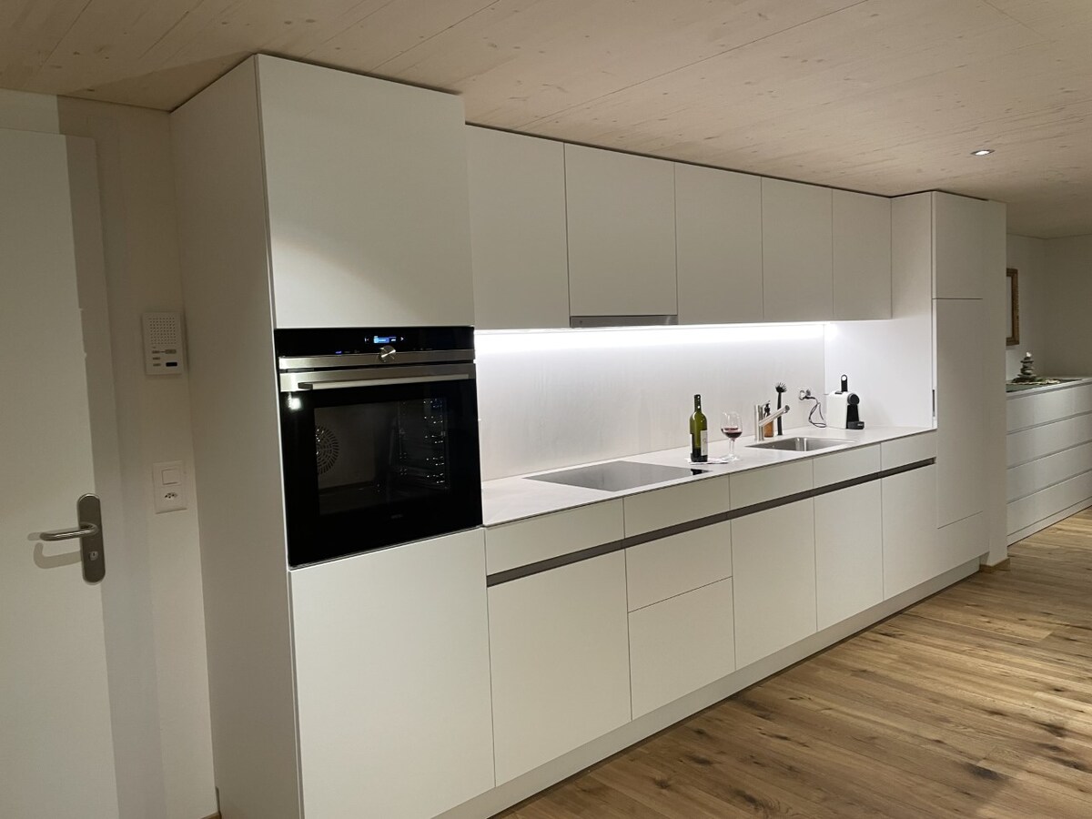 Geniessen sie den atemberaubenden Panoramablick von ihrer heimeligen Wohnung aus, inmitten einer herrlichen Bergwelt, abseits der Hektik des Alltags. Es erwartet sie, eine hochwertige Einrichtung mit vielen liebevollen Details. Eine offene, komplett ausgestattete Wohnküche mit angeschlossenem hellen, modernen Wohnbereich wartet auf Kochkünstler. Zwei Schlafzimmer mit Doppelbetten laden zu erholsamen Nächten ein. Im Sommer steht unseren Gästen ein gemütlicher Sitzplatz bereit.