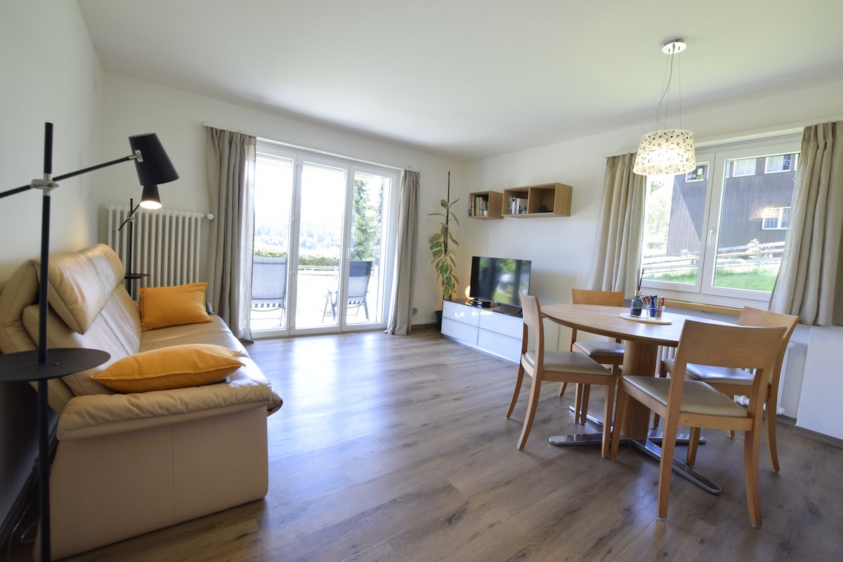Cozy and bright studio apartment equipped with everything you need for a perfect stay in Engadin. The apartment is located in a quiet and sunny area and is distinguished by its warm and well-finished style. It is a five-minute walk from the Marguns ski lifts, which lead to the St. Moriz ski area. Both in summer and winter, it is the perfect base for walks and sports activities (cross-country skiing, ice skating, cycling, tennis, golf, fishing) in the region.