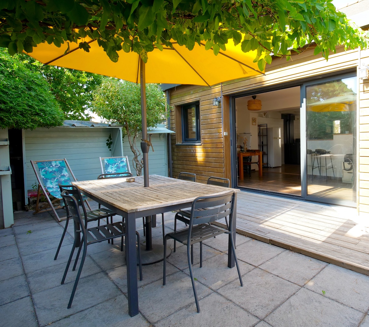 Gîte Ty Sal de 2 personnes avec de beaux volumes face au parc sans vis à vis. Cuisine aménagée et équipée - Four - plaque de cuisson - micro-onde - lave-vaisselles - frigo - congélateur - Machine à café à filtre - Senseo (dosette) - bouilloire - grille pain Grand écran plat SMART TV Barre de son Lit 160x200 confort