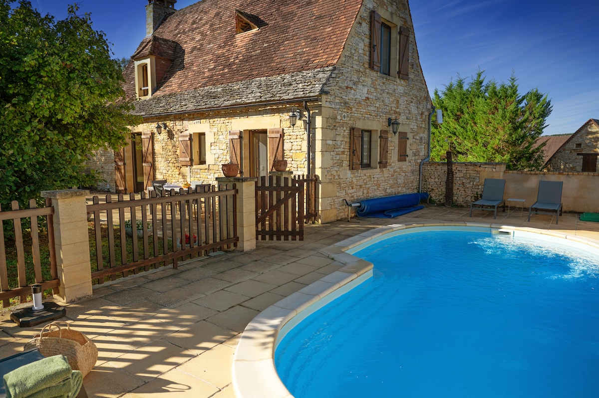 Welcome to our gorgeous country home nestled in rolling, forested hills. Enjoy an exceptional 180° view of the Dordogne while swimming in our infinity pool (open May to October only) or hot tub (available all year). Our property sits on 4 acres of tranquil countryside at the top of the verdant Dordogne valleys. Sit back, have a glass of wine, and watch the hot air balloons paint across the sky at sunrise or sunset. Use our bicycles to explore the locale or BBQ outside and take in the scenery.