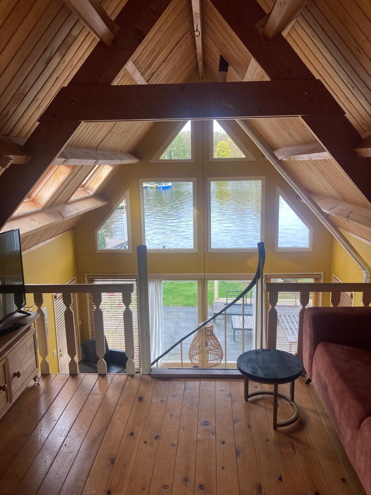 Direct gelegen aan het Paterswoldse meer dit mooie houten huisje, het laatste stukje is alleen lopend te bereiken via het park. Geniet van de rust, geen lawaai van auto´s en het prachtige uitzicht over het water. Of ga het water op met een kano of bootje. Het huisje wordt verwarmd door een gaskachel beneden. Een warme trui en pantoffels zijn aan te raden in de winter. Het is hier niet toegestaan om feestjes te houden of veel lawaai te maken.