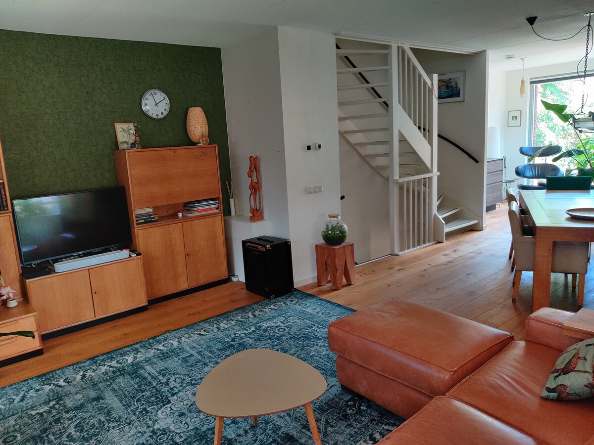 In this unique water villa, you can completely unwind! Centrally located near the vibrant city center of Groningen, yet wonderfully peaceful due to limited traffic. Enjoy the spacious and fully equipped open kitchen with abundant natural light, sink into the extra-deep Bretz sofa, and relax in the generous garden. With 3 bedrooms, there is ample space for 6 guests plus a baby crib. The swimming ladder and air conditioning for 2 bedrooms provide cooling during the summer.