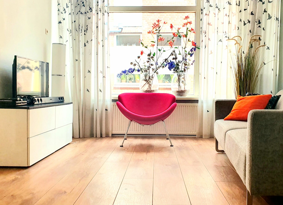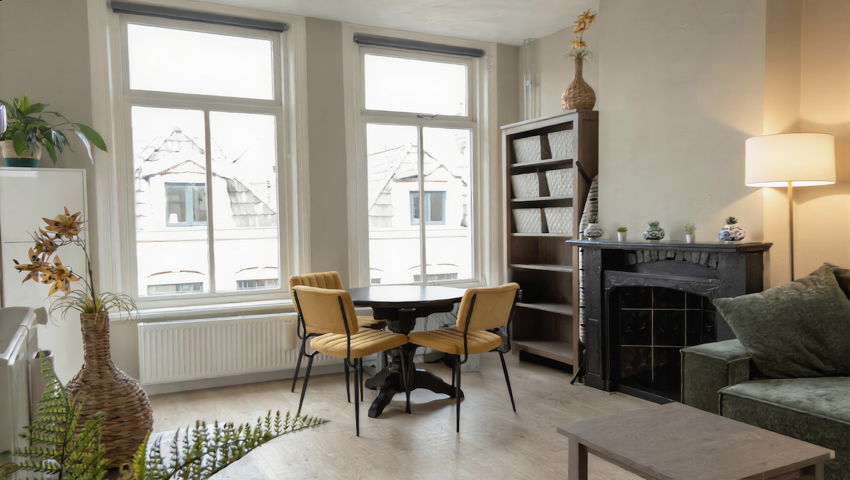 Come and spend the night in my spacious ground floor apartment dating from 1906 with French doors facing the garden! The apartment has its own toilet/shower and a small kitchen. You have a choice of beds, a comfortable queen size bed, single bed, loft bed and a sofa bed. The city center is close by, just like the museum and central train station. Don't hesitate to ask if you require a child's bed, or if you want to bring your dog; nearly everything is possible!