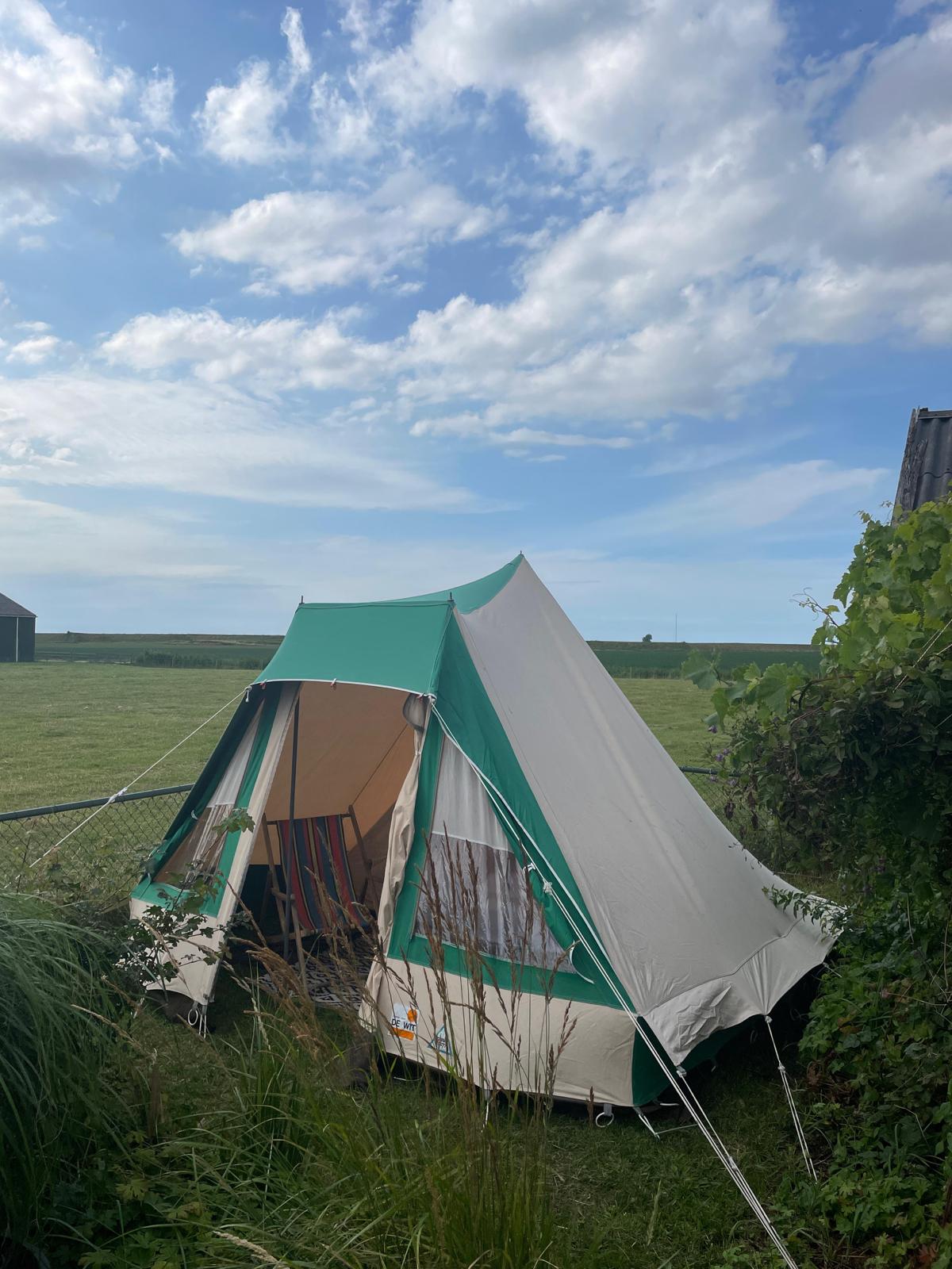 Daar waar het land eindigt en het wad begint staat een tent op je te wachten. Op de kleinste camping van Nederland heb je het rijk alleen. In de achtertuin van herberg Wongema, op een fijn grasveldje met uitzicht op de schapen, staat een mooie De Waard-tent met een heerlijk tweepersoonsbed voor je klaar.