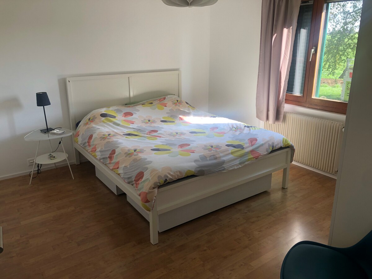 Joli studio pour 2 personnes au calme à la campagne entièrement équipé avec une entrée indépendante et place de parc privée. Les 2 lits peuvent être rapprochés pour former un lit double Nous privilégions les locations de plus de 7 jours: 20% de réduction si plus de 7 jours 50% de réduction si plus de 30 jours